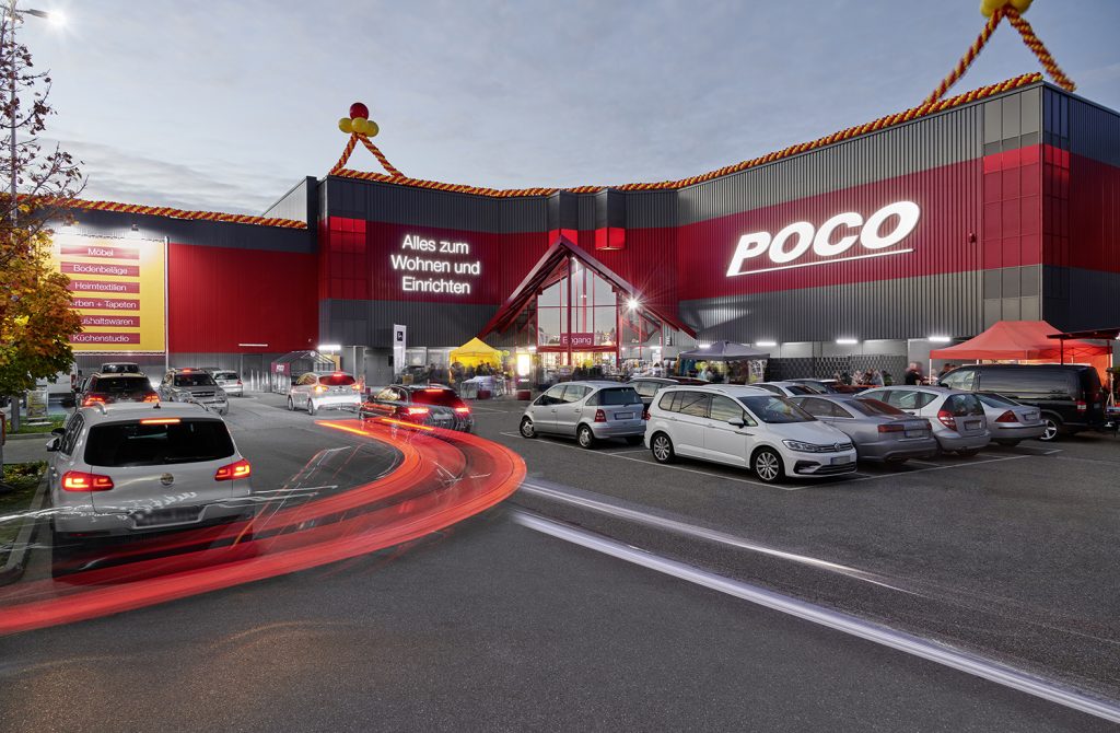 Der POCO-Markt in Pforzheim erscheint innen wie außen im neuen modernen Unternehmensbild.
