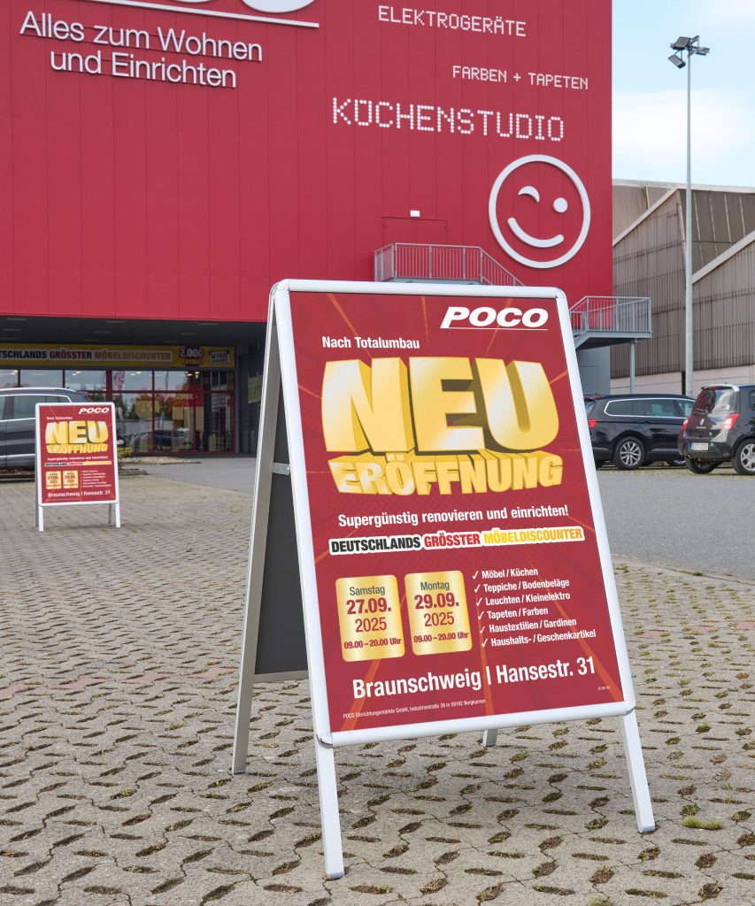 Bergkamen/Braunschweig. „Unsere Neueröffnung nach dem Umbau lief super“, freut sich Ronald Groenert, Marktleiter des POCO-Markts in der Hansestraße 31 in Braunschweig. Von März bis September war der Markt im laufenden Betrieb nicht nur renoviert, sondern komplett umgebaut worden – jetzt repräsentiert er das zukunftsweisende neue Konzept von Deutschlands größtem Einrichtungsdiscounter. Das wurde gebührend gefeiert: Am 27. und 29. September lud POCO zur Neueröffnung mit Super-Sonderangeboten und Unterhaltungsprogramm für die ganze Familie ein.