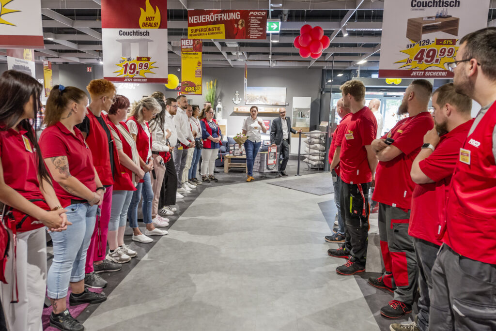 Mit Delmenhorst unterhält Deutschlands größter Möbeldiscounter nun 130 POCO-Märkte in allen Teilen des Landes. Der Delmenhorster Markt repräsentiert das zukunftsweisende Gestaltungskonzept: Die Fassade ist in edlem Anthrazit und Bordeauxrot gehalten, die Wohnwelten werden in anheimelnden Showkojen präsentiert. „Für das moderne Design haben wir schon viele Komplimente bekommen“, berichtet Sandra Busko. Auch die große Auswahl aus mehr als 12.000 Artikeln rund ums Einrichten und Wohnen sowie das Serviceangebot kamen laut der Marktleiterin sehr gut an. Viele freuten sich auch über die extralangen Öffnungszeiten rund um die Eröffnung. Sie gelten weiterhin: Bis zum 10. August öffnet der POCO-Markt Delmenhorst werktags von 8:00 bis 20:00 Uhr seine Pforten, vom 12. bis zum 31. August werktags von 9:00 bis 20:00 Uhr. Ab September ist der POCO-Markt dann von Montag bis Samstag jeweils von 10:00 bis 19:00 Uhr geöffnet.