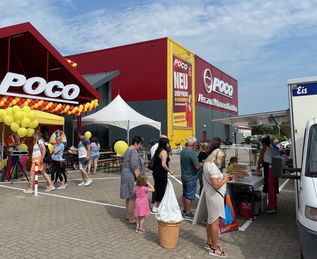 Die Stadt Delmenhorst hat jetzt einen POCO-Markt – das wurde am Samstag, den 3. August gebührend gefeiert. „Die Eröffnung hat super geklappt“, zieht Marktleiterin Sandra Busko ihr Fazit. „Wir hatten viele nette Kunden hier, das Team hat sich super geschlagen und hinterher waren wir zwar kaputt, aber glücklich.“